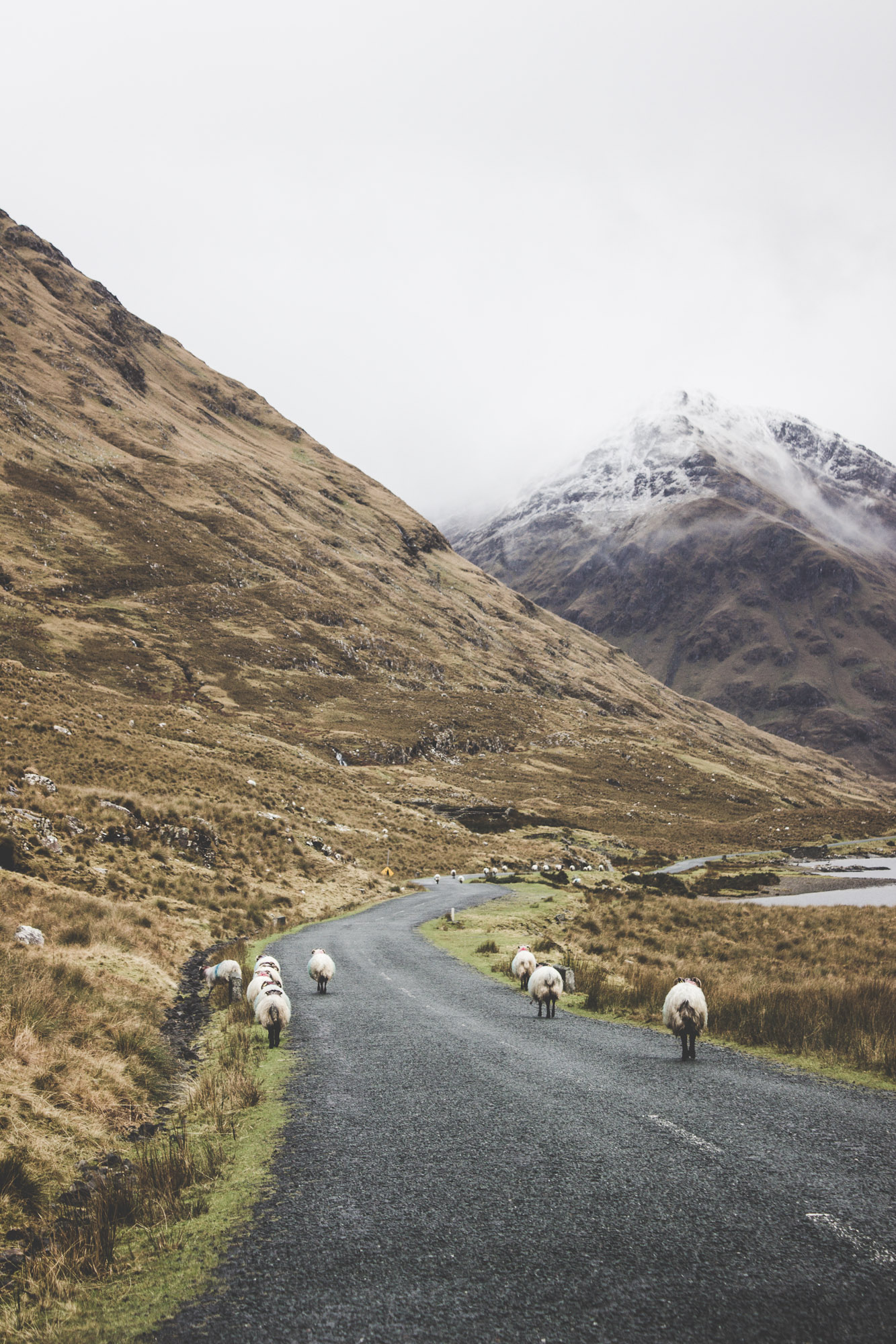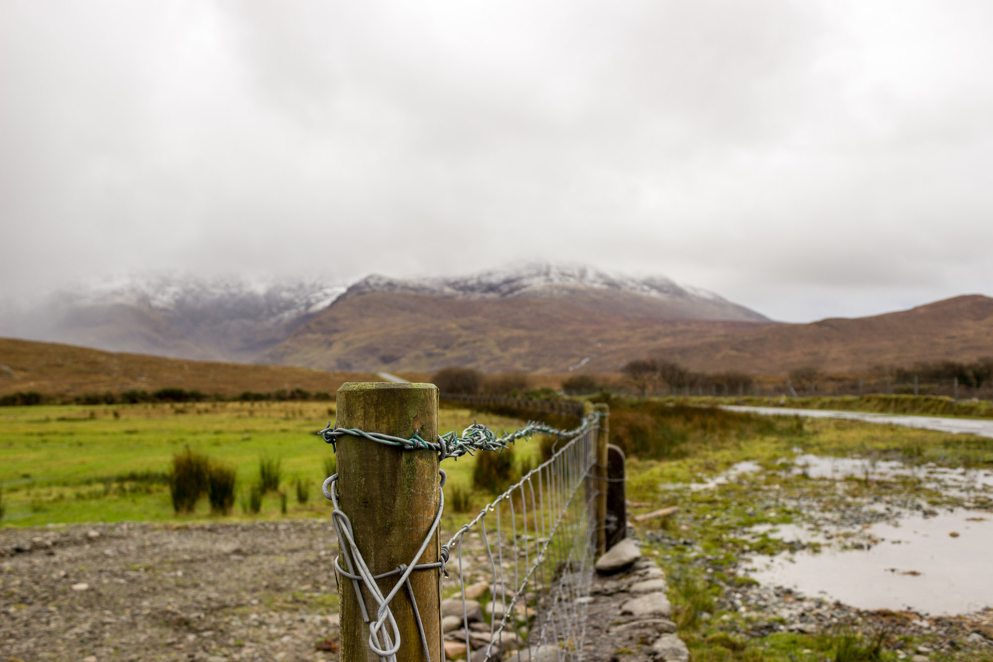 Von Dienstag bis Donnerstag fuhr uns Betül, unser Captain von Dublin über Westport, Louisburgh, Delphi, Leenaun und Clifden mitten durch den Connemara Nationalpark. Abgesehen davon dass es ziemlich eisig war, hatten wir Glück mit dem Wetter und die Sonne zeigte sich ab und zu. Ach ja und in Teilen Irlands liegt tatsächlich Schnee, aber seht selbst…