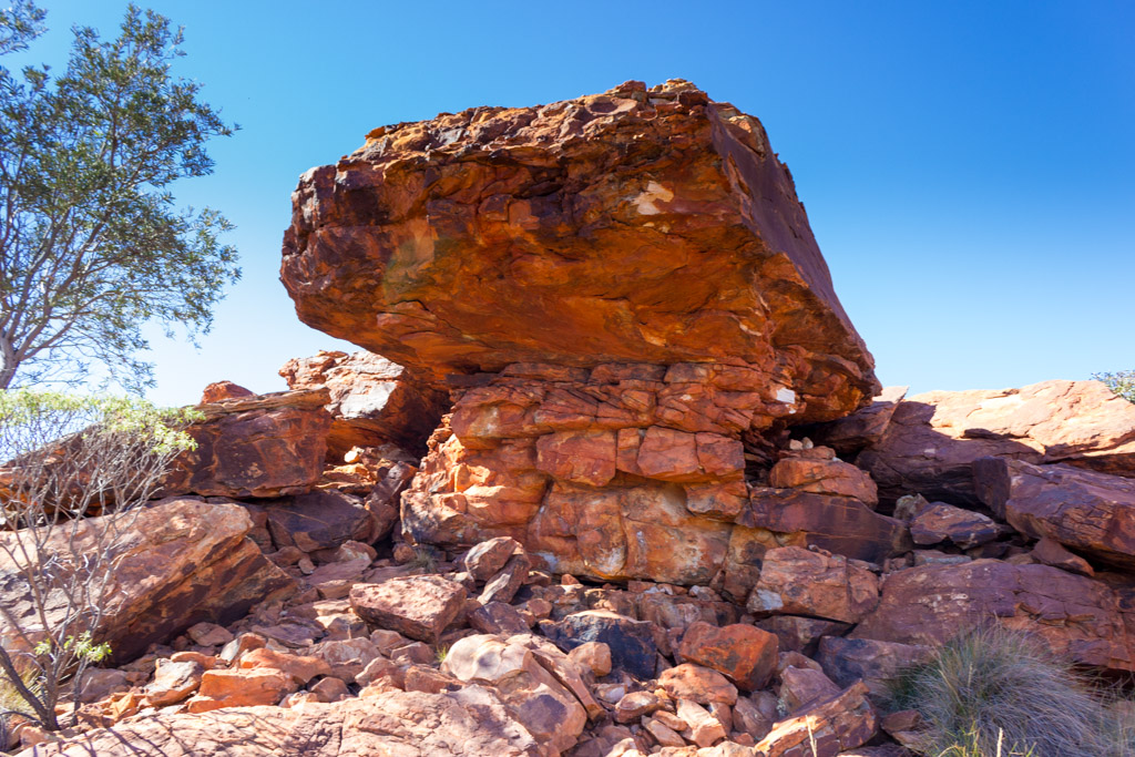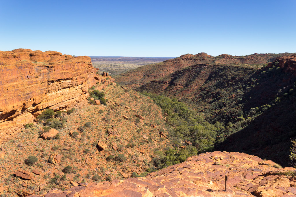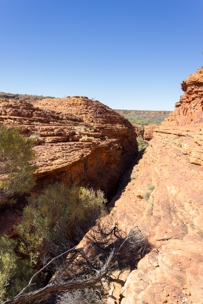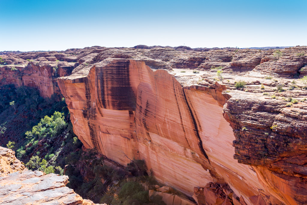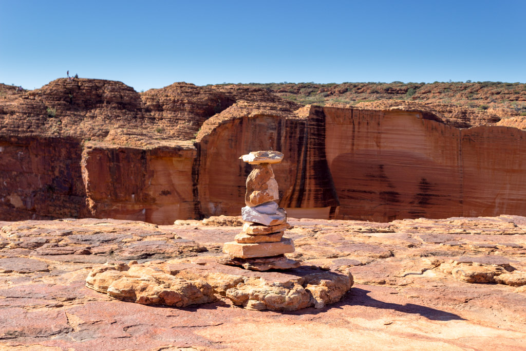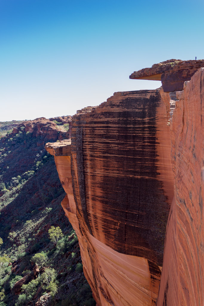 Hier wurde nur getankt, damit wir auch wirklich am Kings Canyon ankommen. Nach weiteren drei Stunden Fahrt waren wir am Ziel und starteten den 7km langen Rimwalk. Beim zunächst steilen Aufstieg wäre ein Sauerstoffzelt nicht schlecht gewesen 🙂 Oben angekommen, wanderten wir um den Kings Canyon vorbei an Schluchten, atemberaubenden Aussichten in schwindelerregender Höhe, Heilpflanzen der Aborigines und der kontrastreichen, grünen Oase, dem Garten von Eden.