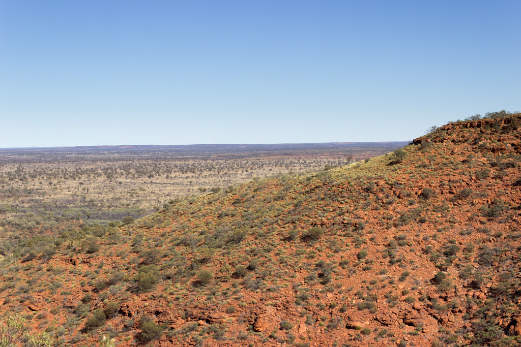 Das dürre Outback ist schon aus der Luft gewaltig. Alice Springs begrüßte uns Mittags mit Sonnenschein, einem wolkenlosen blauen Himmel und 20℃.